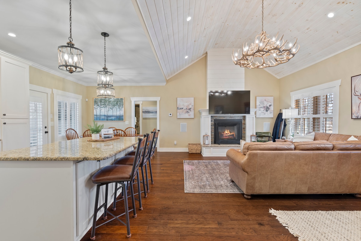 Velkommen til den perfekte ferien! Dette sjarmerende huset ligger i en fredelig skogsomgivelse ved en innsjø, og tilbyr den freden og roen du har lett etter. Slapp av i det private boblebadet, samle dere rundt bålet for s'mores og historier, eller slapp av på verandaen omgitt av naturen. Inne finner du en koselig stue, et fullt utstyrt kjøkken og komfortable soverom designet for ultimat avslapning. Dette fredelige tilfluktsstedet har en egen båtrampe og ligger en kort spasertur fra vannet!