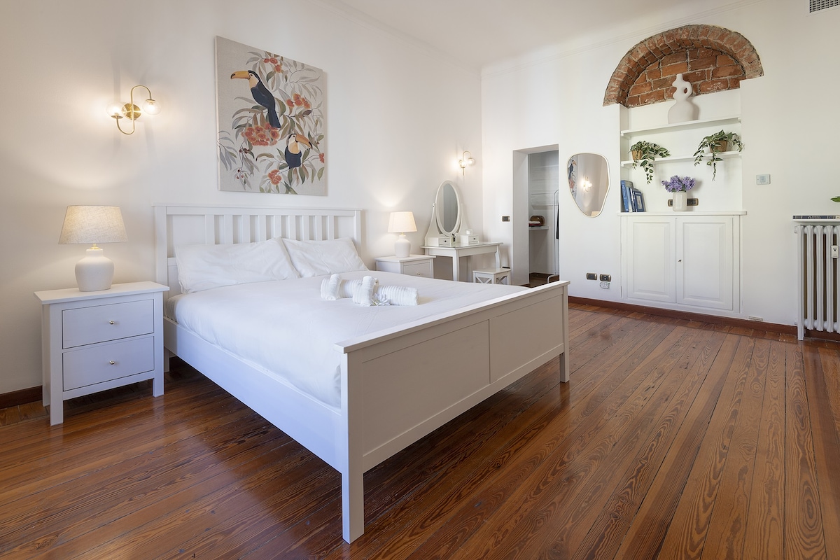 Vogue Apartment er romslig, lys og fint møblert, og den blander milanesisk sjarm med moderne design. De varme tonene i parkettgulvet og de moderne detaljene skaper en harmonisk og innbydende atmosfære, med plass til opptil syv gjester. Hvert område er designet for å tilby komfort, stil og en raffinert opplevelse i hjertet av byen.