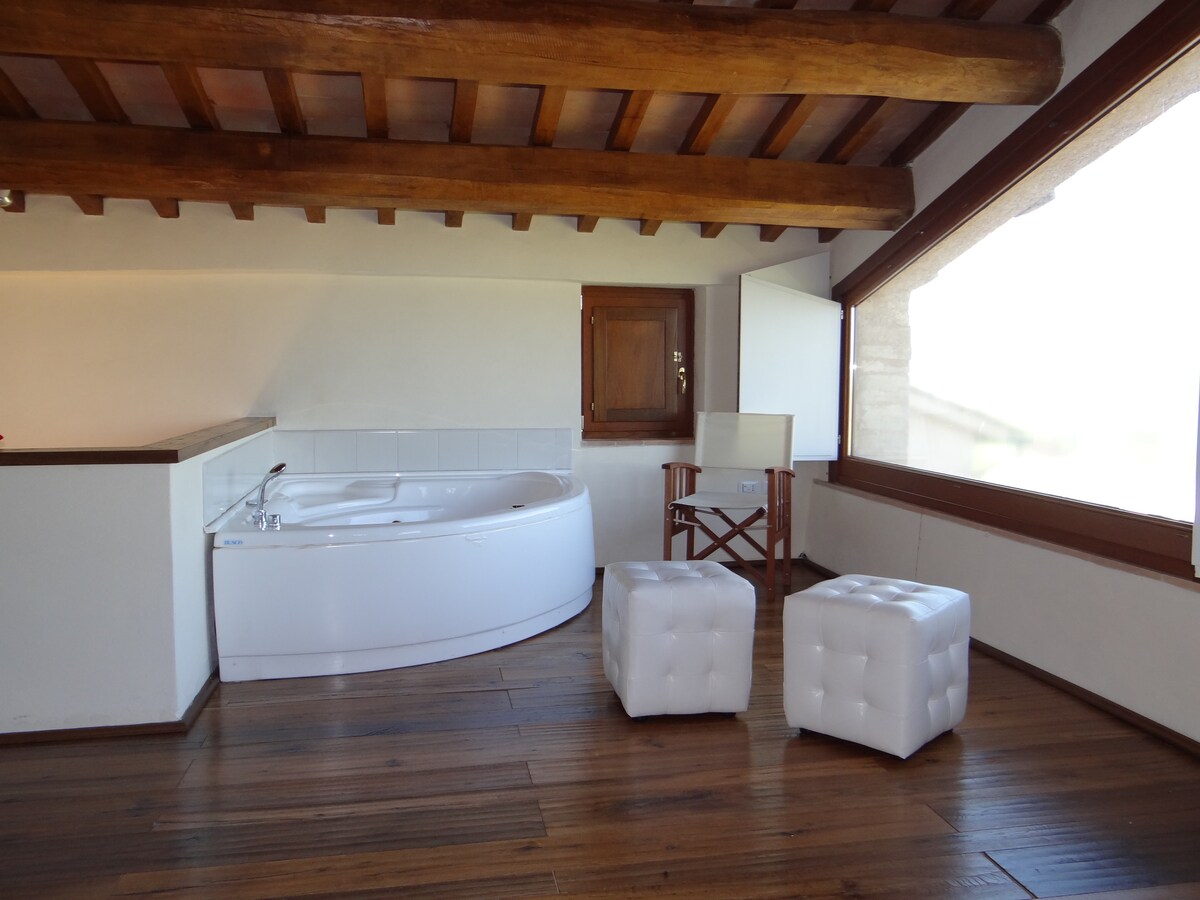 • Et unikt fristed i hjertet av Spello • Slapp av på den private panoramagårdsplassen med jacuzzi, utepeis og den umbriske dalen som bretter seg ut stille foran deg. Gå inn i huset, slå på peisen og gå ned i den private velvære-grotten din: En infrarød sauna og et boblebad med fargeterapi som du har til egen bruk under hele oppholdet. Ingen faste åpningstider, ingen andre gjester. Bare deg. 🫧 Eksklusiv, ubegrenset tilgang til velvære-grotten er inkludert i hver bestilling 🫧
