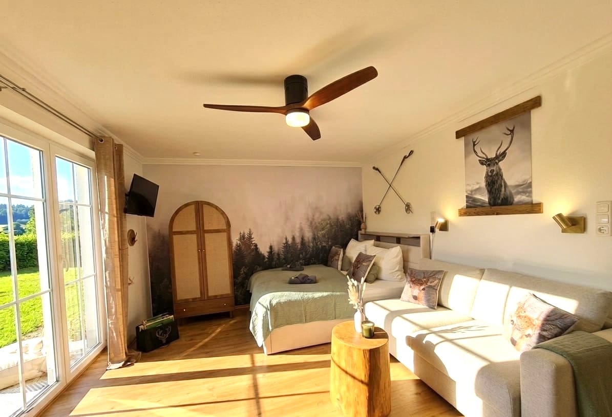 Velkommen til boligstasjonen i den bayerske skogen! Vår stilige leilighet ligger i en spennende tidligere jernbanebygning og har plass til 2–6 personer. Det er det perfekte utgangspunktet for aktiviteter som fotturer, terrengsykling, langrenn og ski. Nyt Drachensee for bading og golfbanen med fantastisk utsikt. Utfluktsmål som Flederwisch, Wildgarten og Felsengänge ligger i umiddelbar nærhet.