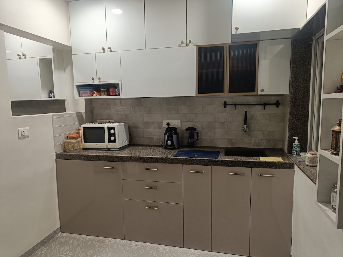 Dette stilige stedet å bo passer perfekt for gruppeturer. Hjemmet vårt ligger i hjertet av industribyen (PCMC), med nærhet til T-bane og offentlig transport. Stedet har all den komfort hjemmet ditt kan tilby, og det er nylig gjort (uten lukt av maling :). Vi tilbyr en 2BHK med to bad, hovedsoverommet som eget bad. Stedet har også en dedikert arbeidsplass/ kontor/ arbeidsplass for bedrifter som ønsker et dedikert sted for bærbare datamaskiner. Soverommet er utstyrt med klimaanlegg.