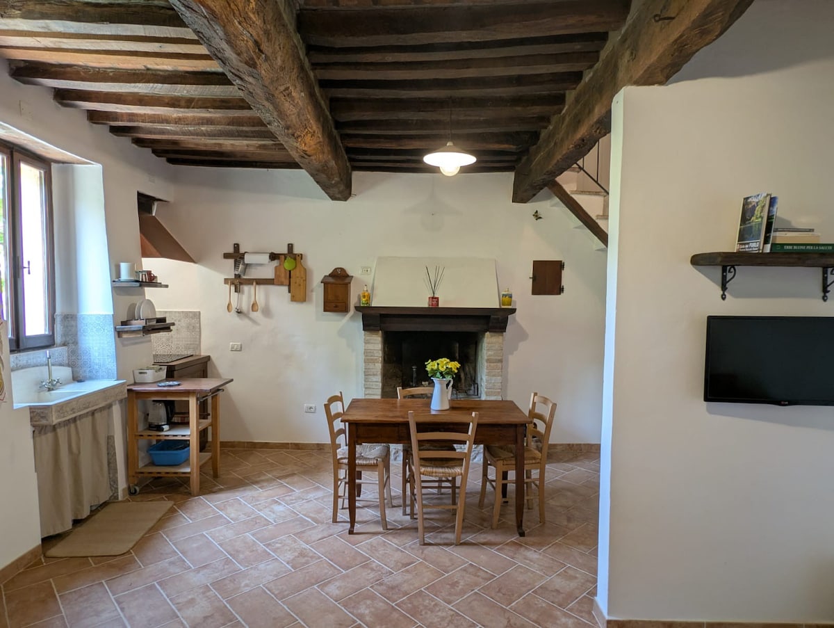 Escape to the rolling hills of Umbria in this updated farmhouse (90 m2 over 2 floors) that retains its original charm. The home features classic beamed vaulted ceilings, original stone finishes, an indoor wood-burning fireplace, private entrance and a private garden terrace. The shared pool has a large sun lounge area. If your favourite dates aren't available anymore take a look at our turquoise apartment. Turquoise: https://www.airbnb.com/rooms/plus/9430389.