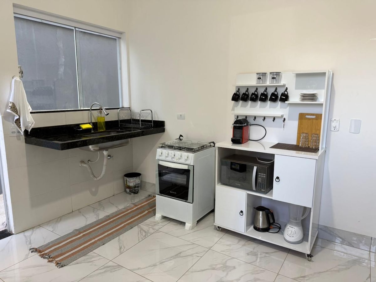 Finn et fristed i hjemmet vårt i Presidente Prudente! Koselig, med en kombinasjon av rustikk sjarm og all den komforten du trenger for å slappe av. Du kan regne med raskt trådløst nettverk, TV, sengetøy og håndklær, klimaanlegg på dobbeltsoverommet, vifter, utstyrt kjøkken, vaskemaskin, garasje med elektronisk port og alt klart for korte eller lange opphold. I et rolig nabolag, kun ti minutter fra Prudenshopping – praktisk og avslappende på et ideelt sted. ✨🏡