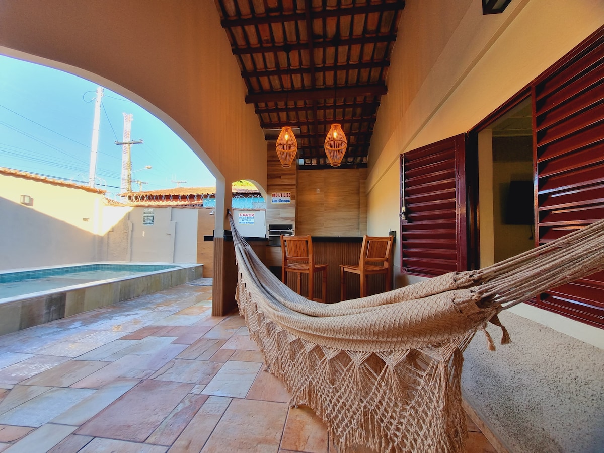 Slapp av med hele familien i denne rolige boligen i sentrum, nær alle severdighetene i byen Pirenopolis Go, 500 meter fra hovedkirken, et privilegert sted. Huset har nok plass og er koselig for 9 personer. Huset har 4 soverom, 2 av dem er suiter, alle med fullt klimaanlegg. I tillegg til fullt kjøkken med bestikk, glass, gryter, kjøleskap, komfyr, mikrobølgeovn, kullgrill osv. Oppvarmet basseng. Kom og bo i sentrum av Piri.