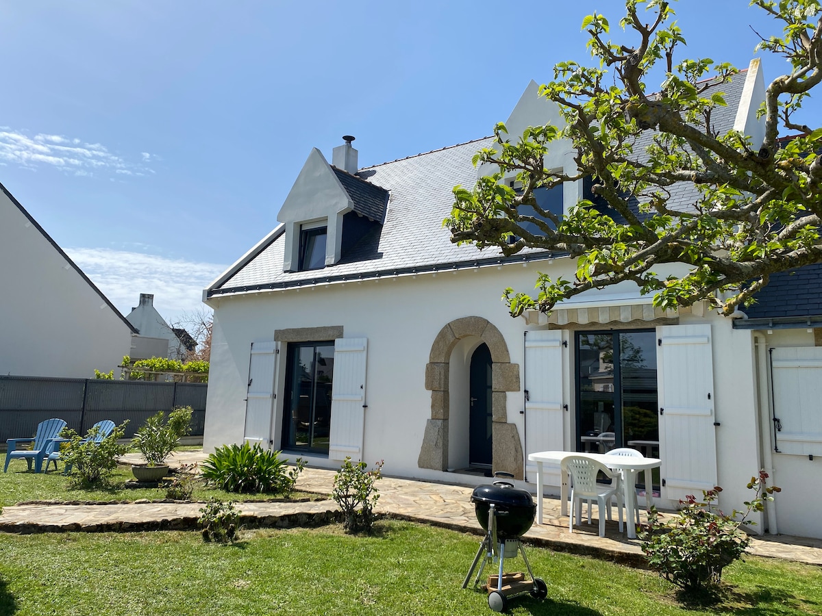 Nyt et koselig overnattingssted to skritt fra havnen og stranden. Beliggende i gågaten, kan du nyte alle fasiliteter rett utenfor døren. Utstyrt kjøkken med: ovn, mikrobølgeovn, induksjonsplater, Tassimo kaffemaskin, vannkoker, brødrister, blender... Sofa, TV, hjemmekino Soverom med seng 140x190 Dusjrom med toalett, vask, hårføner, vaskemaskin, tørketrommel, strykebrett og strykejern. Ligger i 1. etasje i et bretonsk hus.