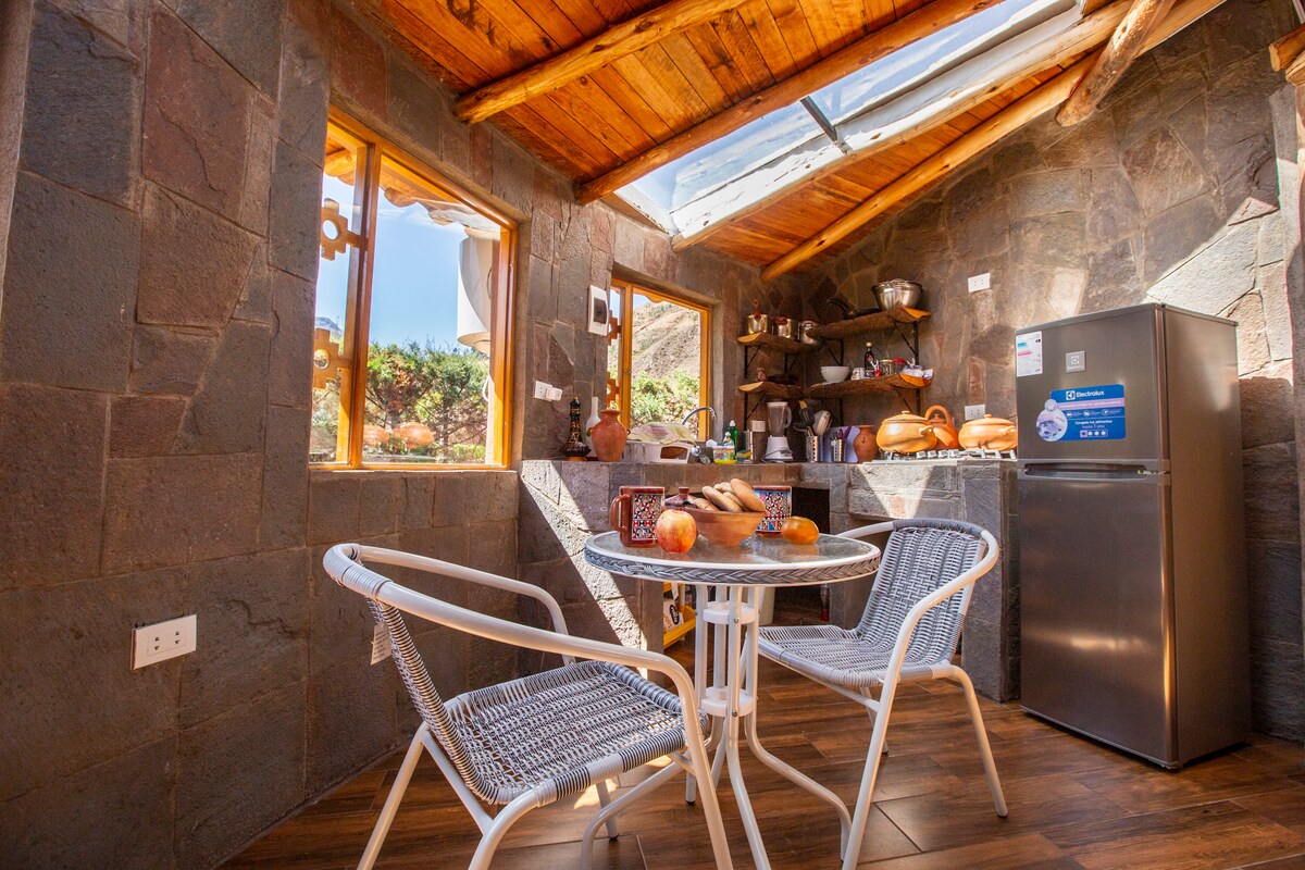 Velkommen til Refugio Maras, et hellig sted midt i Andesfjellene. Vi ligger i nærheten av byen Maras i et veldig strategisk område med en utrolig utsikt over den hellige dalen, dens isbreer og den fantastiske ogeiske himmelen. Hvis du ser etter en autentisk fordypningsopplevelse i Andesfjellene, fant du rett sted. Du vil ha en komfortabel privat øko-cabaña fullt møblert. Frokost er inkludert hver dag. Lunsj og middag tilbys ved reservasjon.