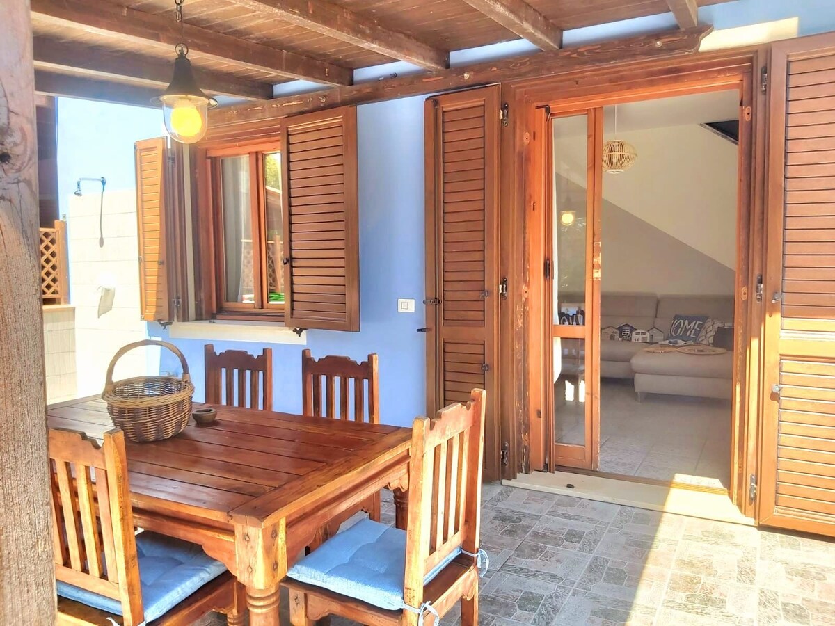 Vakkert hus i Stintino vendt mot havet, i nærheten av Pelosa og Saline, stue med kjøkkenkrok, 2 doble soverom og 2 bad med dusj, 1 loftsrom med 3 enkeltsenger og utendørs strand dehor med veranda og bord til frokost, lunsj/middag, privat parkeringsplass. Nespresso-maskin. Inkl. i prisen er inkludert i prisinnstilte laken og sett med håndklær og rengjøringsgebyr, vann, gass, enel og HI-FI-SYSTEM med profesjonell rett. Klimaanlegg i alle rom.