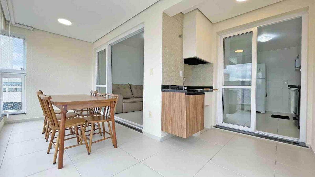Guarujá Pitangueiras, luft, balkong og grillplass.