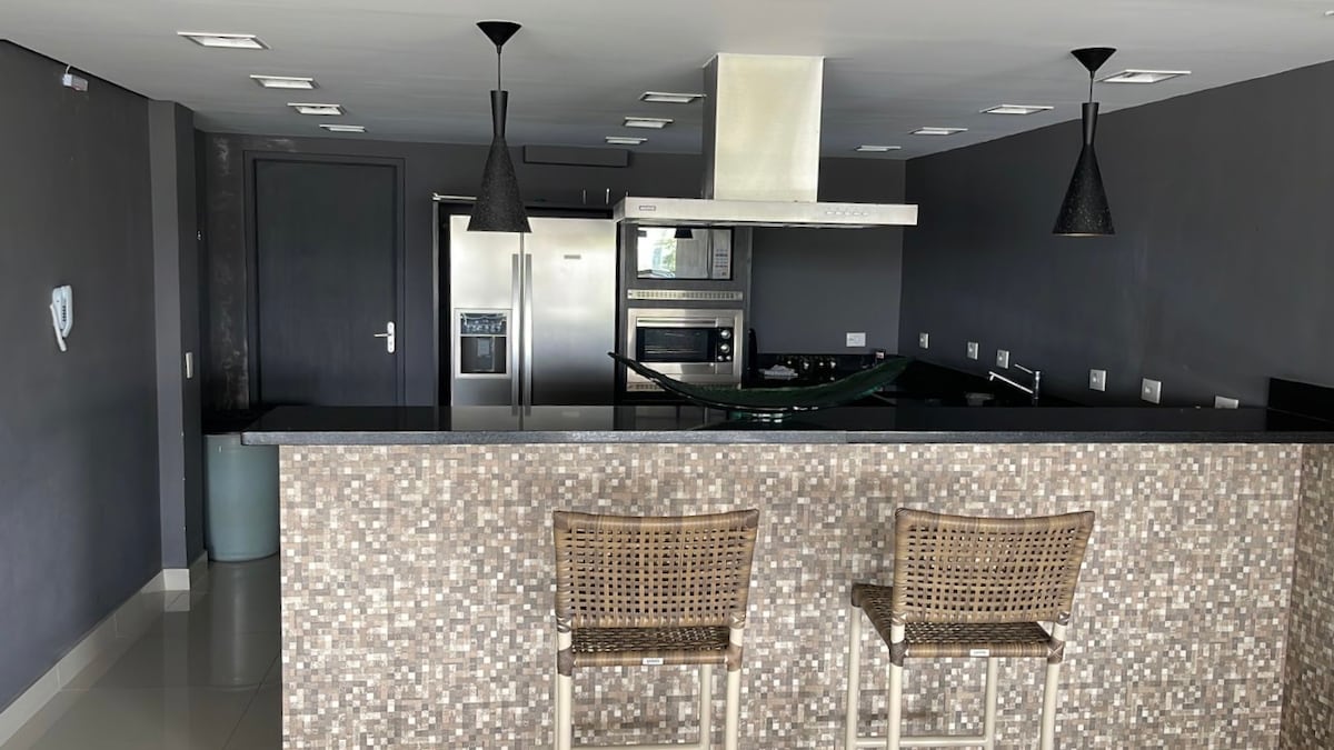 Leilighet på 76 kvm, to soverom (ett med en queensize-seng og det andre med en køyeseng med tre madrasser), begge med aircondition, to bad, en stor stue med en sovesofa, en TV i stuen, et kombinert kjøkken, et kjøleskap, en komfyr, komplette kjøkkenredskaper, et vaskerom med en vaskemaskin. Strandservice, innendørsbasseng, badstue, trådløst nettverk, treningssenter, spillrom, innendørs garasje, 50 meter fra den beste delen av Pitangueiras-stranden, ved siden av Morro do Maluf. Nær LaPlage kjøpesenter og restauranter.