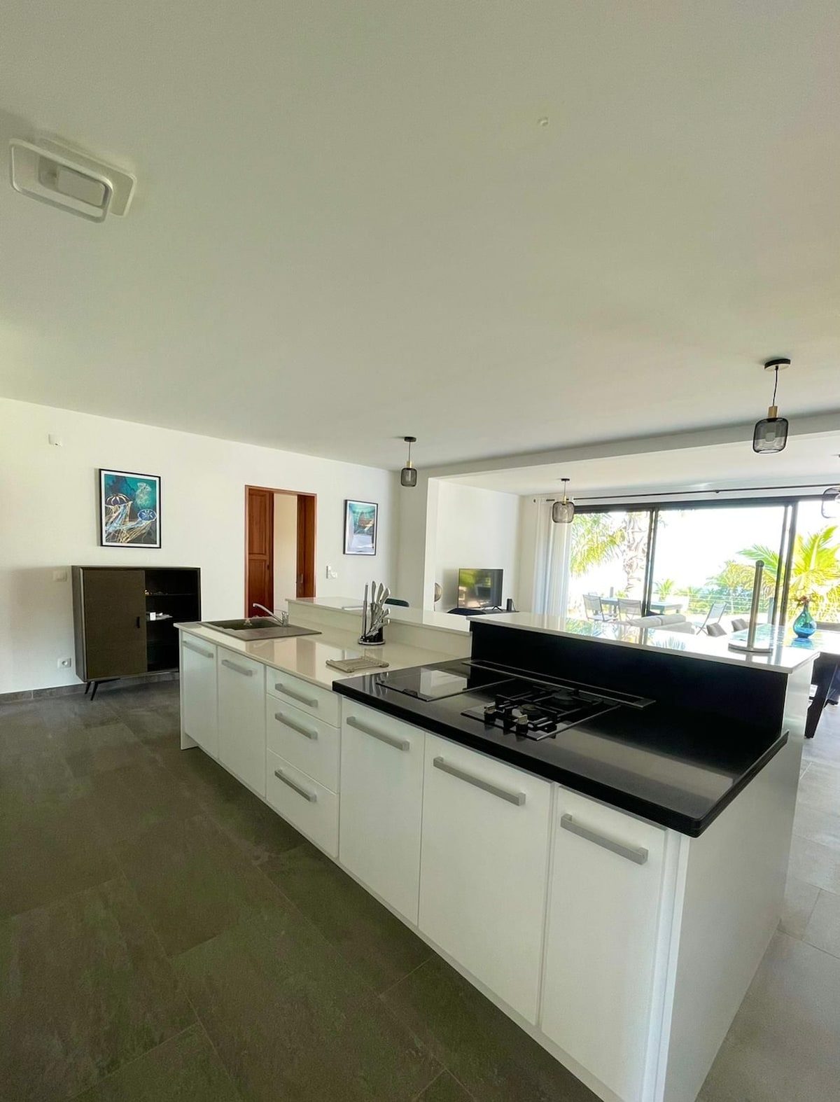 Moderne villa med 3 soverom med fantastisk utsikt over havet, lagunen Saint-Pierre, palmer, sukkerrørsmark og fjell. En ekte oase, 3 soverom (seng 180 cm, 2 senger 160 cm) Stor stue som åpner seg mot fullt utstyrt kjøkken med utsikt over havet. Jacuzzi for 6 personer. Utendørs dusj. Terrasse med eksepsjonell utsikt over sjøen/fjellet, hagemøbler, lenestoler. Grillhjørne med grill og Weber-grill. Parkeringsplasser Sengetøy og håndklær er inkludert. Gratis Wi-Fi.
