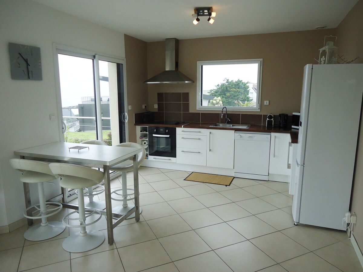 Romslig moderne villa med utsikt over stranden Kervel