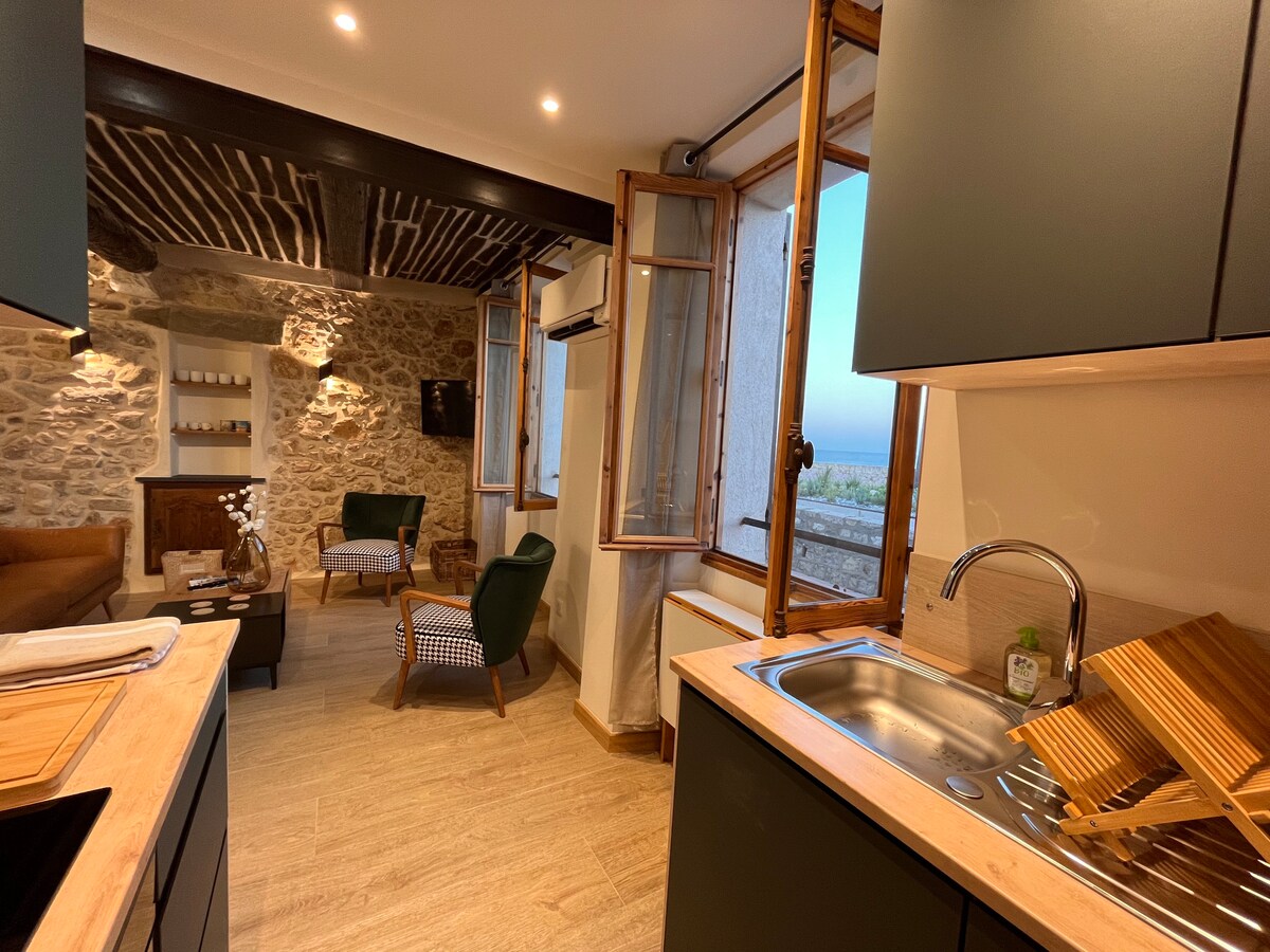 Halvveis fra Nice og Monaco, i Eze, en sjarmerende suite for fotgjengerlandsby i et sentralt lite hus med en takterrasse med utsikt over Middelhavet . Stue og stue med peis på første etasje, deretter soverommet og et delvis åpent bad med et opplyst badekar og dusj. En magisk og romantisk innkvartering midt i det gamle landsbyen Eze, kjent for sine håndverk sine kunstgallerier, sine restauranter og den eksotiske hagen på toppen. En fantastisk utsikt !!!