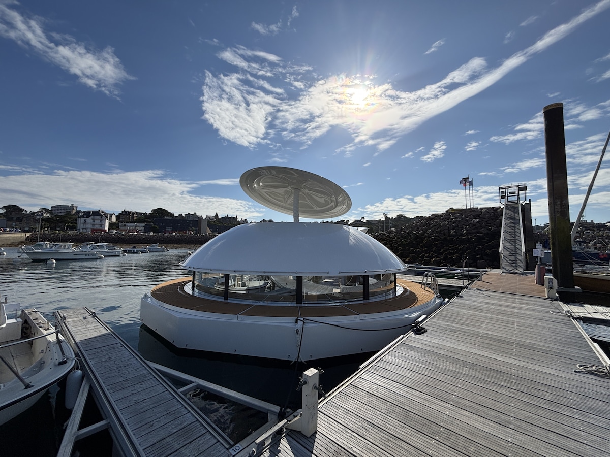 1st Suite Flottante Hotel with a unique design, ANTHENEA is a floating habitat with underwater vision, unsinkable, open to the sky and the sea at 360°. Med en rund seng, et rundt badekar, en drømmende takterrasse, kan du nyte en unik James Bond-inspirert opplevelse. En atypisk opplevelse i det franske turistlandskapet.