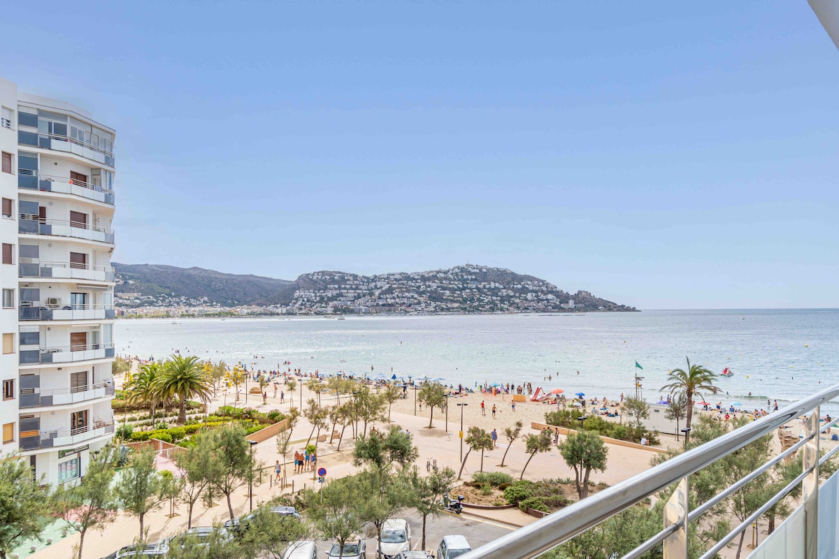 Vakker, moderne, lys leilighet ved stranden med spektakulær utsikt over Rosas Bay og dens promenade fra terrassen. Den er fullt utstyrt (kjøkken og redskaper, varme / klimaanlegg, strykejern, vaskemaskin, laken og håndklær, trådløst nettverk ...) og har en privat parkeringsplass.