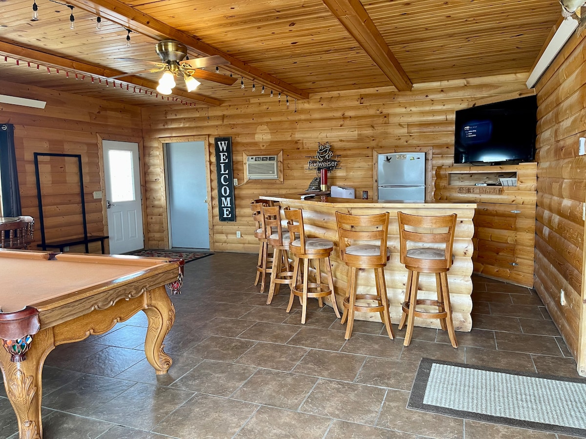 Denne familiehytta ligger på den vakre landsbygda i Sør-Dakota. Den ligger bare 30 minutter fra Mitchell og rett ved Interstate I-90! Denne hytta har to nivåer med fire soverom og to bad. Det er to storskjerm-TV-er, pokerbord, Foosball og biljardbord, samt gratis trådløst nettverk! Gassgrill og bålpanne også! Den ligger i en privat skogsomgivelse med vakker utsikt, og det er den perfekte hytta for å lene seg tilbake, slappe av og nyte det vakre landskapet i Sør-Dakota!