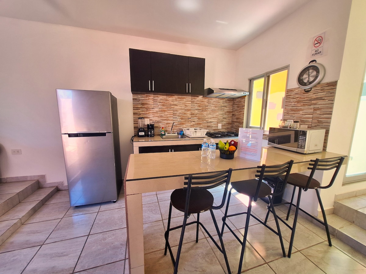 Minidepa Zero er et monospace som passer for én person, med alt du trenger for å hvile i første etasje i huset, i et sentralt område, 10 minutter fra strandpromenaden og hotellområdet. 5 minutter fra supermarkeder og 3 kvartaler fra Rafael Buelna Avenue som tar deg direkte til turistområdet. Hunder kan bjeffe på dagtid i og rundt huset.