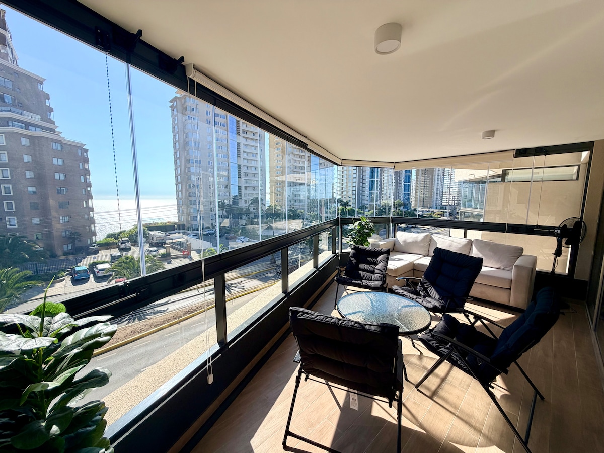 Privilegert beliggenhet 5 minutter å gå til stranden. Leilighet i første linje mot stranden, direkte tilgang fra Avenida Borgoño (kysten), du trenger ikke å gå ned trapper eller bruke utvendige heiser, rett ved stranden. Spektakulær 100 % klar utsikt over havet, stor møblert terrasse med gassgrill. Wi-Fi, SmartTV, vaskemaskin og tørketrommel i leiligheten, fullt utstyrt for 10 personer. Tre romslige, lyse og komfortable soverom, eksklusive senger, sengetøy og mørkleggingsgardiner.