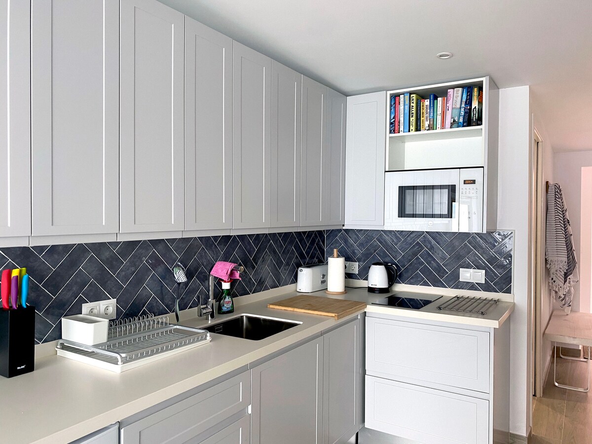 Moderne leilighet med 2 soverom og parkeringsplass med strandutsikt