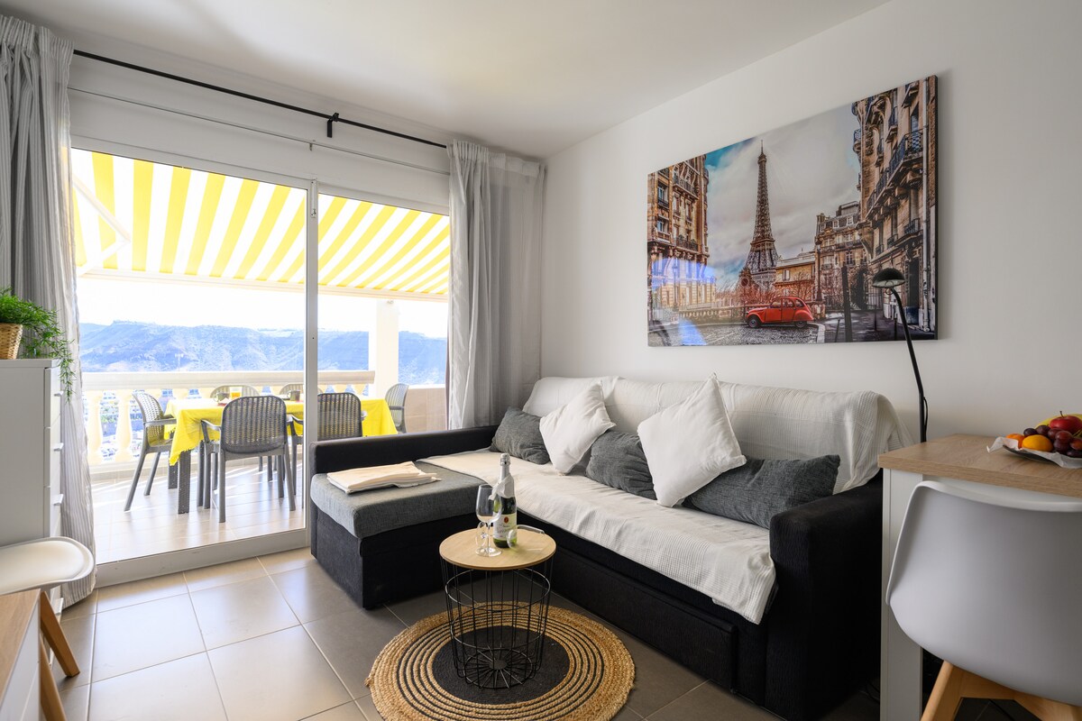 Charming apartment in a villa with seaview and your private salt pool, ( no chemicals) sun-terrace, sun all day. NB! Smokingfree area indoor and outdoor! Perfect for home office, 2 desks with comfortable chairs. Short way to all you want to see in the area. 15 minutes walk to the sea, beaches and the village with restaurants by the sea. The host live in the apt above and can assist you. Possible to rent a portable aircon for warm summerdays, for 9 Euro a day. ( See management fees).
