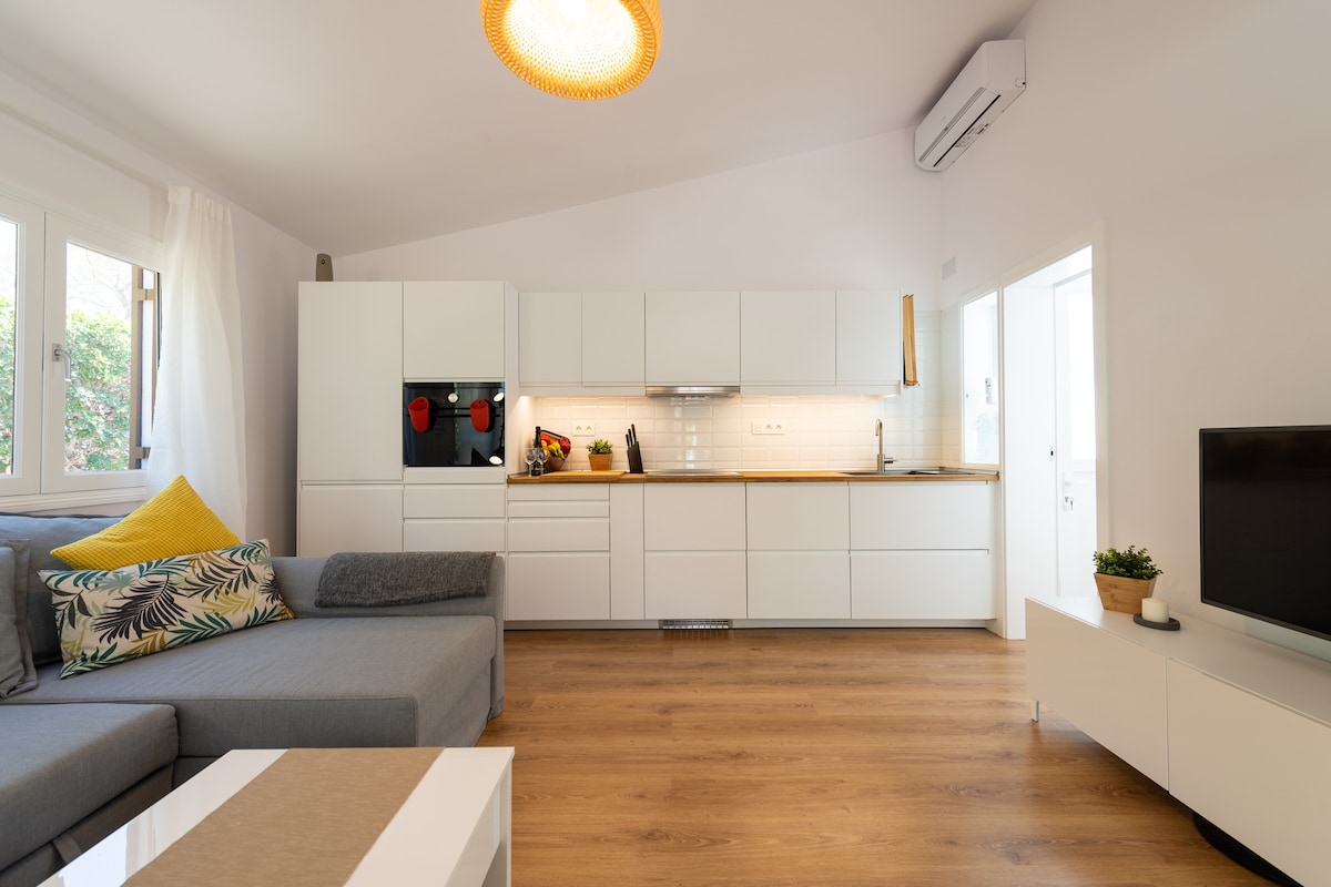 Se for deg en sjarmerende bungalow i et rolig område, men med utmerket tilgang til hovedveiene og kollektivtransport. Den har et moderne og innbydende design. En lys stue med funksjonelt og åpent kjøkken, store dører og utsikt over den private hagen, et ekte tilfluktssted, med kunstgress og en liten veranda for å slappe av. Det er et perfekt sted å nyte måltider utendørs, lese en bok eller bare slappe av i de rolige omgivelsene.