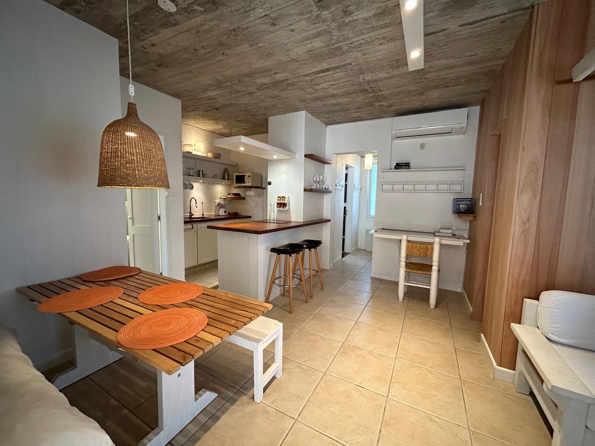 Denne koselige leiligheten ligger bare 5 kvartaler fra Tío Tom-stranden og 9 kvartaler fra Laguna del Sauce, og har 4 senger (én dobbeltseng), fullt utstyrt kjøkken, eget bad, og et skrivebord med TV og aircondition. I tillegg inkluderer den spisebord, stoler, garderobeskap og egen inngang. Ideelt for å nyte roen og nærheten til naturen i Punta Ballena med utmerkede solnedganger.