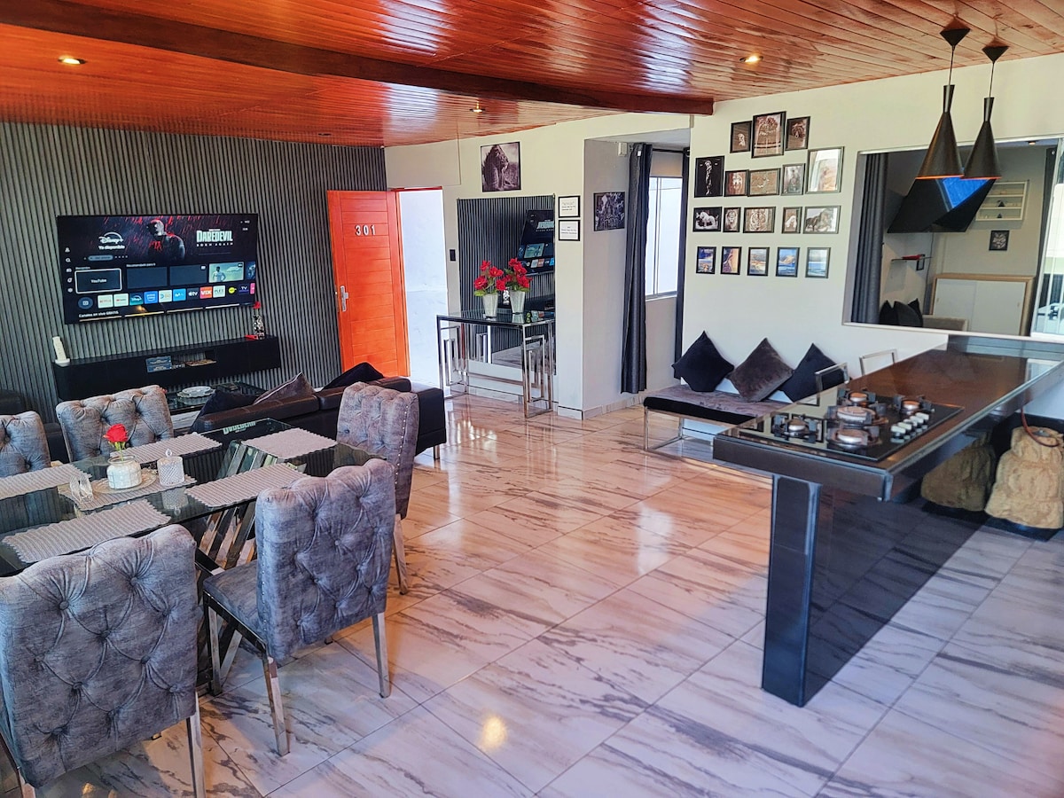 Femteetasjes leilighet med en vakker panoramautsikt over havet og den beste beliggenheten i Punta Hermosa. Det har et samlet areal på 130 m2: 115 m2 innendørs og en 15 m2 terrasse med en grill. Det er et oppvarmet basseng på 1,4 x 1,9 meter. Fire soverom og tre komplette bad. Den har et fullt utstyrt gasskjøkken med mikrobølgeovn, elektrisk stekeovn, 450-liters kjøleskap og komplett kjøkkenutstyr og spiseplass for opptil ti personer. To mobile skrivebord, en romslig spiseplass og høyhastighets trådløst nettverk tilgjengelig.