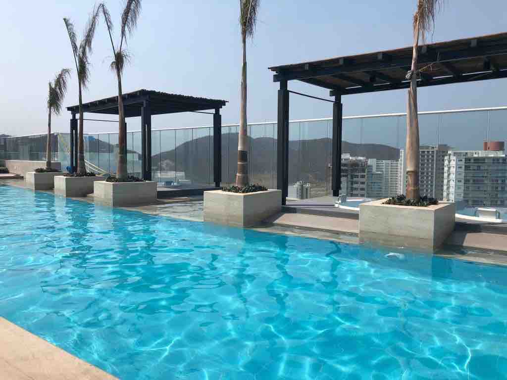 Edificio WIND sector playa salguero , Rodadero Leilighet med to soverom, tiende etasje Havutsikt Den har 1 svømmebasseng for voksne, 1 for barn, 4 boblebad (2 tredje etasje) (2 i etasje 20) , tyrkisk bad, badstue ,direkte tilgang til stranden. Én parkeringsplass tilgjengelig innendørs. •rom 1 1 dobbeltseng Ett bad Walk-in-closet •rom 2 2 enkeltsenger Sosialt toalett 1 enkel sovesofa og 1 dobbeltseng Trådløst nettverk. Innsjekking kl. 14.00. Utsjekking kl. 12.00 BYGNINGEN KREVER ET GEBYR PÅ 40 000 COP PER PERSON