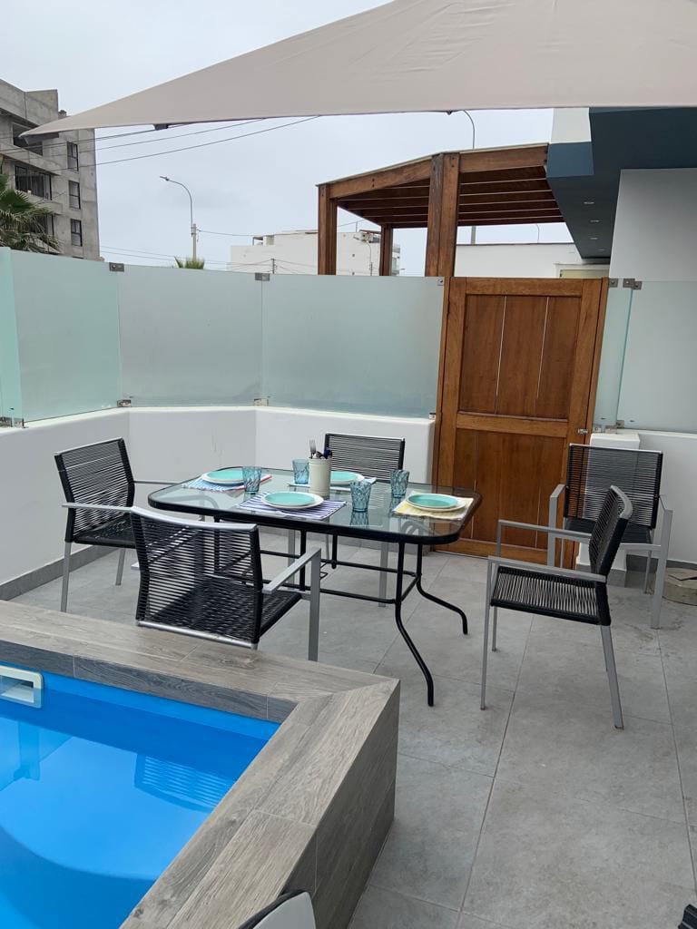 Slapp av med spektakulær havutsikt, basseng og sikker parkering i selveierleiligheten. Tilgang til havet, nær de beste bølgene i sør som Peñascal, Huayco, Santa Rosa, Los Muelles de San Bartolo. Fullt kjøkken, mikrobølgeovn, kjøleskap, kaffetrakter, vannkoker, varmt vann, trådløst nettverk, en komfortabel futon eller sovesofa, en oppblåsbar madrass og kikkert for landskap. LES HUSREGLENE.
