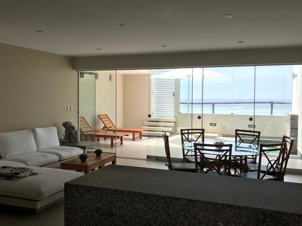Duplex på Señoritas-stranden, Punta Hermosa. Andre rad, med utsikt over havet, direkte tilgang til stranden, svømmebasseng, stor terrasse med grill og peis. Leiligheten er veldig godt utstyrt for 8 personer, du kan nyte havet og utsikten hele året. Området er super rolig og trygt, noen få meter fra de viktigste restaurantene og barene. Vi forsøker å tilby fleksjonert innsjekking og utsjekking (avhengig av tilgjengelighet).