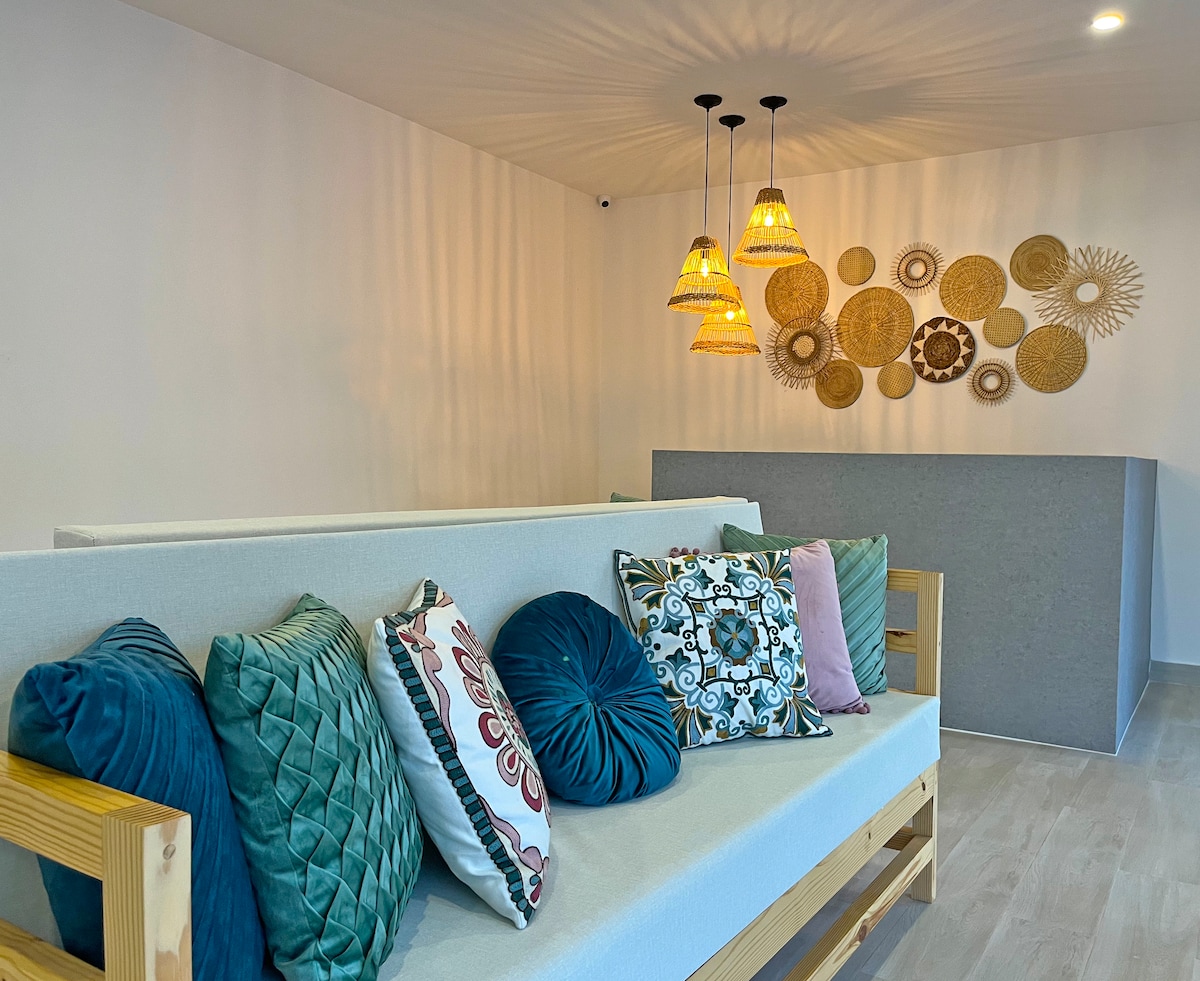 Slapp av på denne unike og fredelige ferien. Vi befinner oss i en av de beste sektorene på øya, hvor du kan nyte en vakker utsikt og solnedgangen i San Andres. Vi er noen få skritt fra den symbolske første kirken som ble grunnlagt i 1813. Leiligheten vår har alle fasilitetene vi har tre soverom, to bad, fem senger til din disposisjon som kan konverteres til dobbelt- eller enkeltsenger i henhold til dine behov.
