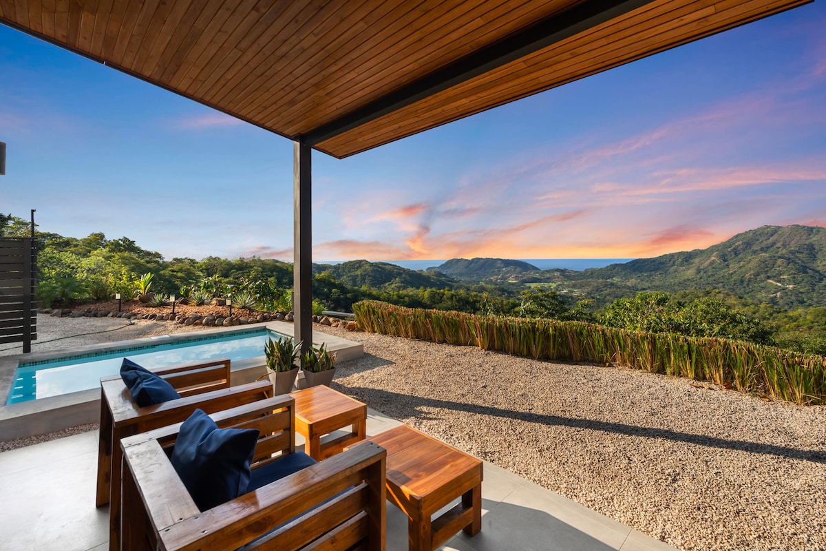 Beautiful contemporary home with breathtaking ocean and mountain views, a private infinity pool, high-speed 100 Mbps internet, and hot water. Spacious gated property with a perimeter wall and electric gate for privacy and security. Just a short 450-meter walk to the beach. Perfect for relaxing stays in a quiet neighborhood. Only 5 minutes by car or 20 minutes walking to downtown Playas del Coco. Liberia International Airport is 24 km away, with direct flights from the US and Canada.