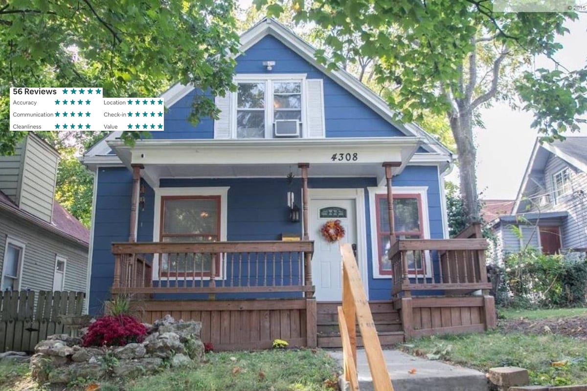 Kom og besøk denne hyggelige bungalowboligen på en kort tur eller et lengre opphold! Nyt det nyoppussede kjøkkenet og badene våre! Dette hjemmet ble bygget i 1910 med en romslig veranda og originale tregulv. Du vil elske karakteren og sjarmen til dette hjemmet som ligger mellom Westport (som tilbyr et spennende natteliv) og The Plaza (flott for shopping og mat). Begge ligger innenfor gangavstand. En Uber vil ta deg til Sprint Center, Power and Light-distriktet, Arrowhead stadion og museer!