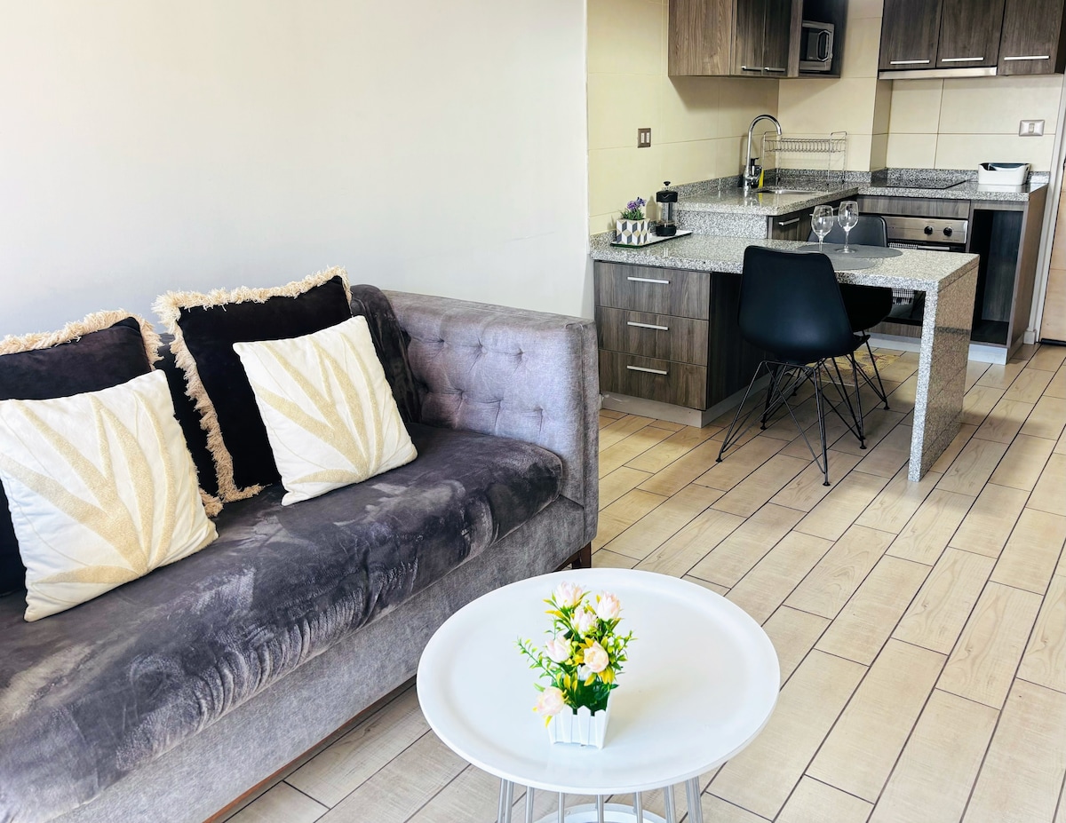 Beautiful apartment in the heart of Santiago. The apartment is completely renovated for our guests’ comfort, with thoughtful design touches. The space has a living room and dining area, and one full bedroom. The building is very central, and in a safe Santiago Centro location. Besides being only half a block from Santa Lucia metro station, you can easily walk to many tourist attractions around Santiago, the closest being the Cerro Santa Lucía Park, the National Library, and Barrio Lastarria.