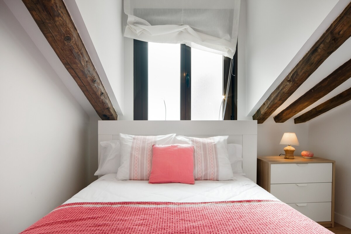 Ny leilighet i en gammel bygning, med romslig heis for 4 personer, veldig lys stue med sovesofa, spisebord, TV, fullt utstyrt kjøkken, bad med dusjkabinett og toalett, separat vask, soverom med dobbeltseng på 1,50, balkong og vindu, 2 innebygde skap og lesehjørne med ergonomisk stol. Planta superior mediante escalera interior con vista a doble altura accediendo a dormitorio con cama doble y baño integrert. Tilgang til terrasse med utsikt over katedralen og kirkene i historiske Madrid, med bord for 4 personer. Leiligheten ligger i øverste etasje i en renovert tradisjonell bygning med heis. Det er to hovedsoverom med dobbeltsenger og kapasitet for seks personer som bruker sovesofaen i stuen. Hovedsoverommet har eget bad. Kjøkkenet er fullt utstyrt, og hele leiligheten er dekorert av en designer som gjør hjemmet ditt i Madrid. Fasiliteter: TV, trådløst nettverk, sentralvarme, aircondition i stuen, kjøleskap, oppvaskmaskin, mikrobølgeovn, ovn og vaskemaskin. Vi ordner innsjekkingstidspunktet avhengig av ankomsttidspunktet ditt. Det er normalt fra kl. 15.00, men vi vil gjøre vårt beste for å ha leiligheten klar for deg så snart som mulig. Hvis du trenger noe under oppholdet ditt, må du gjerne kontakte oss! Latina er et av byens mest stemningsfulle nabolag i Madrid sentrum. Det er ganske mange utelivssteder, selv om området er mest kjent for å ha de beste konsentrasjonene av tapasbarer. Noen ganger referert til som El Madrid de los Austrias, opptar La Latina det eldste området i Madrid, den islamske citadellet innenfor bymurene, som opprettholder en særegen urban layout som ligner på den middelalderske distribusjonen med smale gater og store torg. Ideelt plassert for kollektivtransport. Mange transporttjenester ligger noen minutters gange unna (T-bane, buss, taxi, sykkel til leie (Bicimad), leiebil). Det er også en parkeringsplass svært nærme på Plaza de la Cebada for de som tar med egen bil. Hovedsoverommet ligger i andre etasje, og det er helt uavhengig.