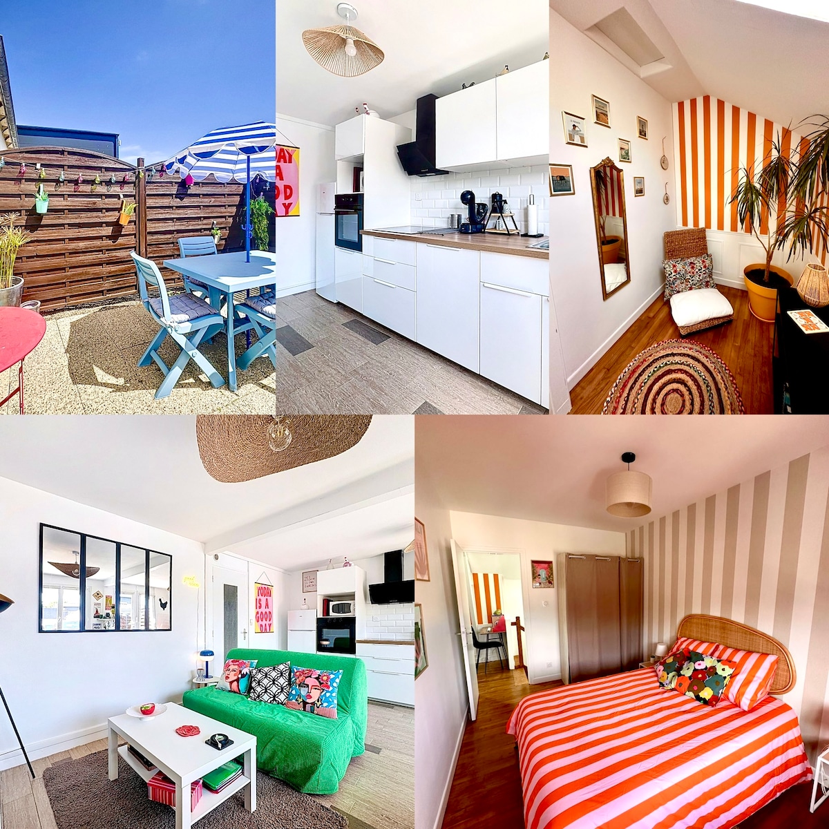 Sjarmerende rekkehus, totalrenovert, med terrasse vendt sørover og inngjerdet hage, rolig beliggenhet i en liten blindgate. Et steinkast fra togstasjonen (Paris Montparnasse på to timer og 15 minutter) og ti minutter med bil fra den første stranden. Ideell for et arbeidsstopp eller et avslappende opphold. Du kan nyte et fredelig miljø mens du holder deg nær sentrum og transport. Den sikre gårdsplassen lar deg oppbevare syklene dine (leie på stasjonen) uten bekymringer.