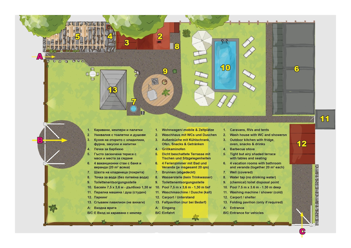 Herzlich Willkommen in Pliska! Camping Pliska ist der erste und bisher einzige Campingplatz in der historischen bulgarischen Hauptstadt Pliska, unweit von Shumen, Madara und Warna. Wir bieten 6 Plätze für Wohnwagen/Wohnmobile und für bis zu 12 Zelte - darüberhinaus bieten wir ab Sommer 2025 4 Ferienzimmer für jeweils bis zu drei Personen mit eigenem Bad an. Ein kleines Highlight ist unser ab Sommer 2025 nutzbarer, kleiner Pool für alle Gäste. Eine Abkühlung zwischendurch ist also immer möglich.