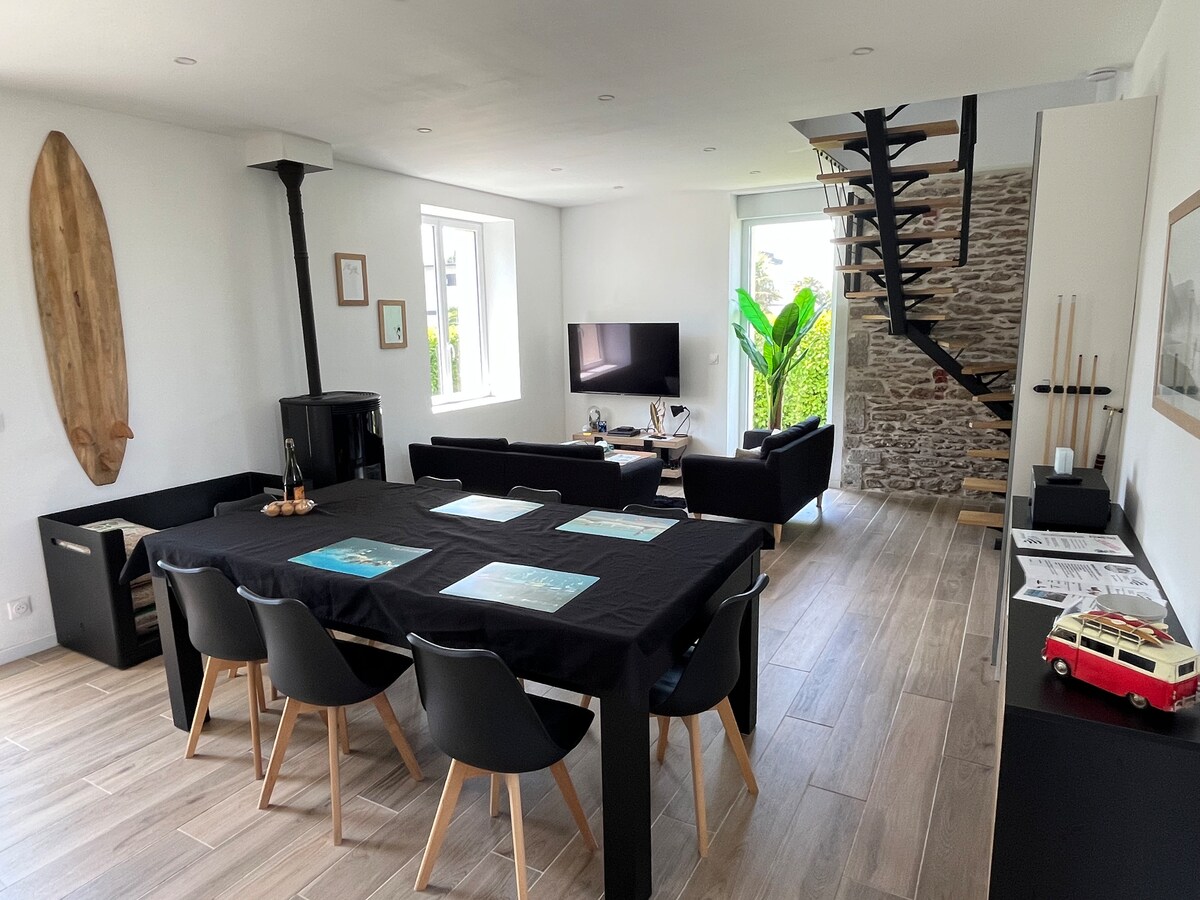 Kom og slapp av i denne vakre boligen med utsikt over havet og denne vakre regionen ♥ Mot sjøen i Trez-Hir ♥ Strendene og de unike turiststedene Innendørs ♥ svømmebasseng (oppvarmet til 27°) (stengt fra 4. november til 20. desember 2024) ♥ Pent og varmt innredet ♥ Føttene i vannet, stor terrasse med havutsikt, vendt mot stranden ♥ 3. og siste etasje ♥ Kontor + Wifi for forretningsreiser ♥ Perfekt for å oppdage Pays d'Iroise, 30 minutter med bil fra Brest