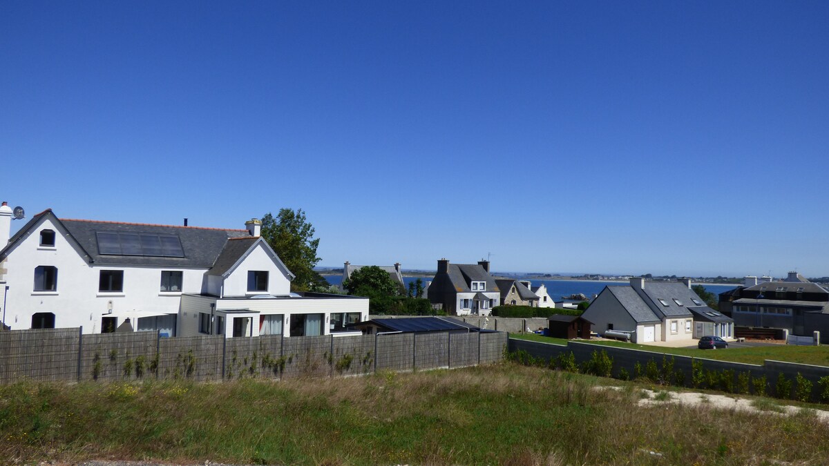 Trenger du litt frisk sjøluft? Ikke nøl, kom og oppdag landet og dets autentisitet. Ideelt for elskere av vann- og landaktiviteter, 2 skritt fra Brest. Et pent hus som ligger på kanten av sanddynen på stranden Grève Blanche, klar til å ta imot deg med et fullt utstyrt kjøkken i første etasje, åpent mot spisestuen og en koselig stue, toalett og vinkjeller. I andre etasje, 3 soverom, et stort bad, separat toalett. Solsikker terrasse og hage.