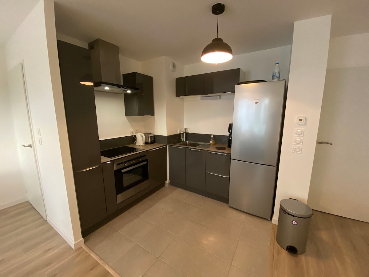 Elegant og lys leilighet i Lanester – parkering, balkong og Netflix 📍 Ideell beliggenhet: fem minutter fra Lorient og ti minutter fra strendene 👥 Kapasitet: perfekt for to (par, forretningsreise, fjernarbeid). 🚗 Komfort: privat parkeringsplass 🌞 Utvendig: solrik balkong for å nyte de vakre dagene. 🍳 Kjøkken: fullt utstyrt for hjemmelagde måltider. 🌐 Tilkobling: ultraraskt fibernettverk. 🛏️ Tjenester som er inkludert: sengetøy og laken. 🔑 Praktisk: innsjekking uten vert og responsiv concierge