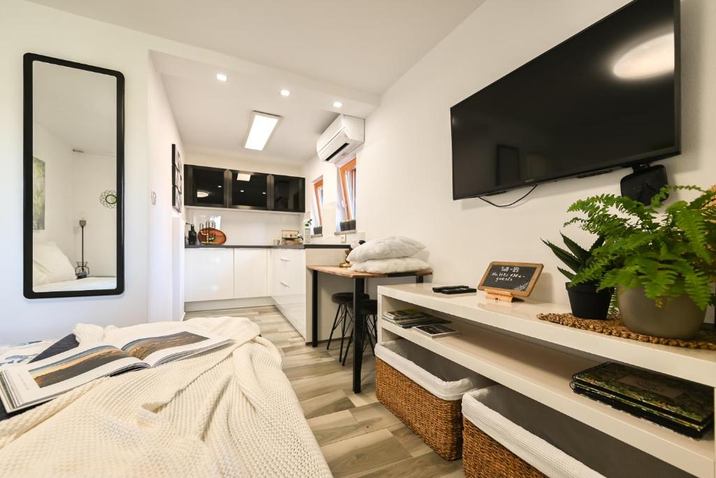Det renoverte huset i istrisk stil ligger i innlandet til den slovenske kysten. Overnattingsstedet med klimaanlegg og utsikt over hagen består av et rom med en dobbeltseng og en flatskjerm-TV, et moderne kjøkken og et eget bad. Den tilknyttede balkongen prydet med en vinpergola ligger på østsiden av huset og tilbyr et koselig sted å slappe av.