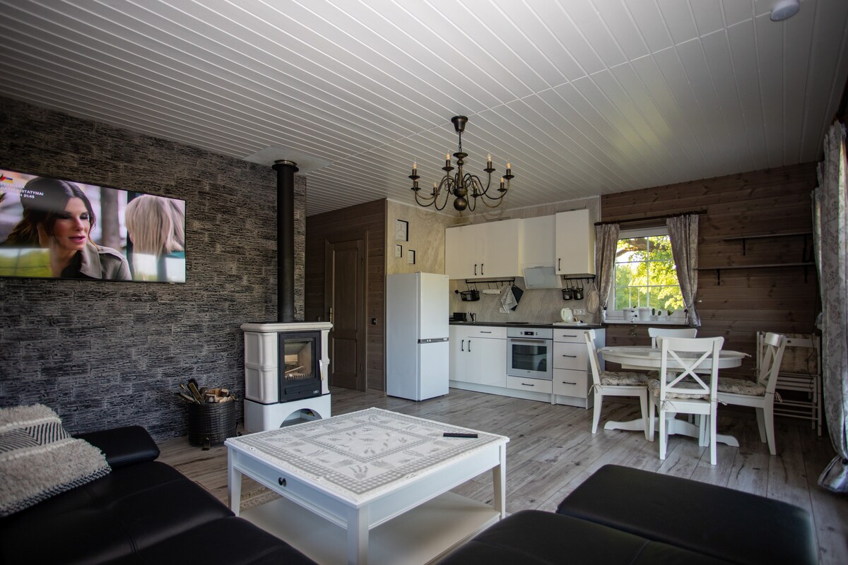 Eksklusiv og koselig alpehytte med to soverom i Medsėdis, i Zemaitija nasjonalpark, nær innsjøen Plateliai. Privat, stille, like ved skogen. Ideell for ferier, ferier, romantiske sammenkomster. Vi har plass til opptil fire gjester. PRISEN ER FOR FIRE GJESTER.