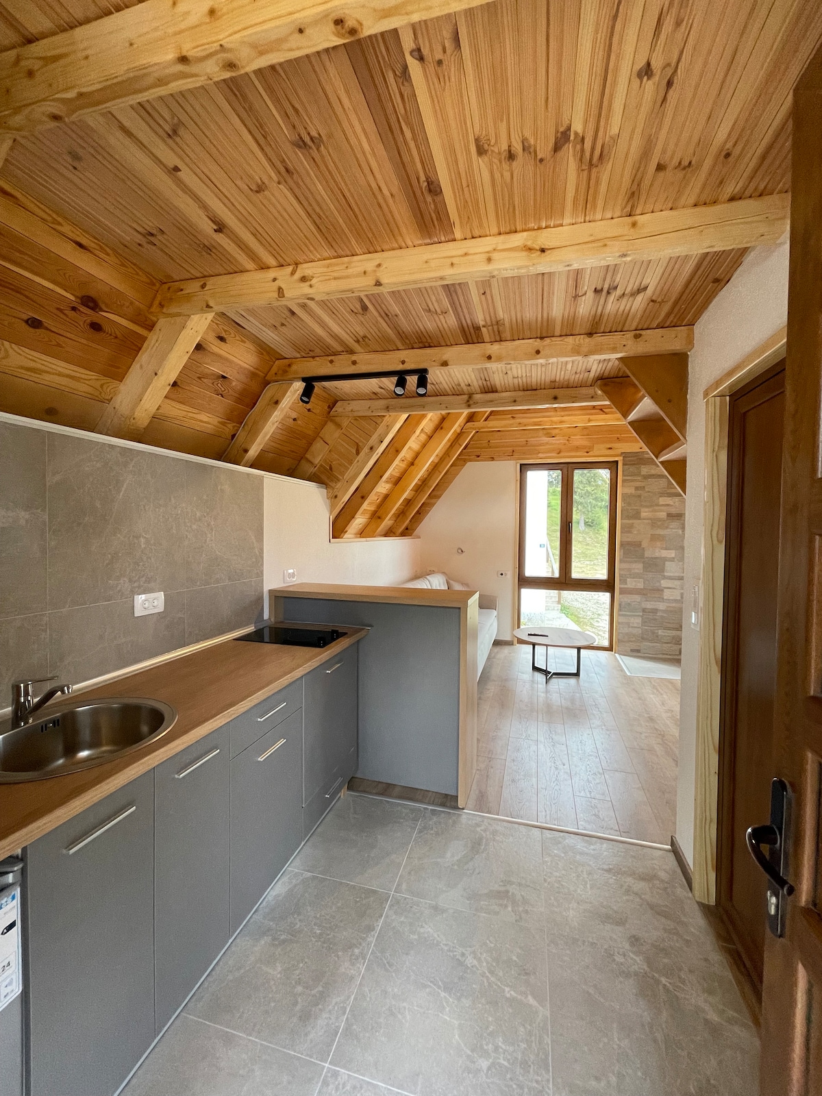 The cabin is located in beautiful nature, near the birch forest, below the mountain peak Štuoc, overlooking the mountains. The cabin is made entirely from the wood. We are the perfect starting point for all your adventures if you are planning an active vacation because with us you can hire a guide for hiking tours, sightseeing and visiting places hidden in the heart of our village, as well as book rafting or canyoning in season. We also offer an outdoor sauna for additional fee. Welcome!