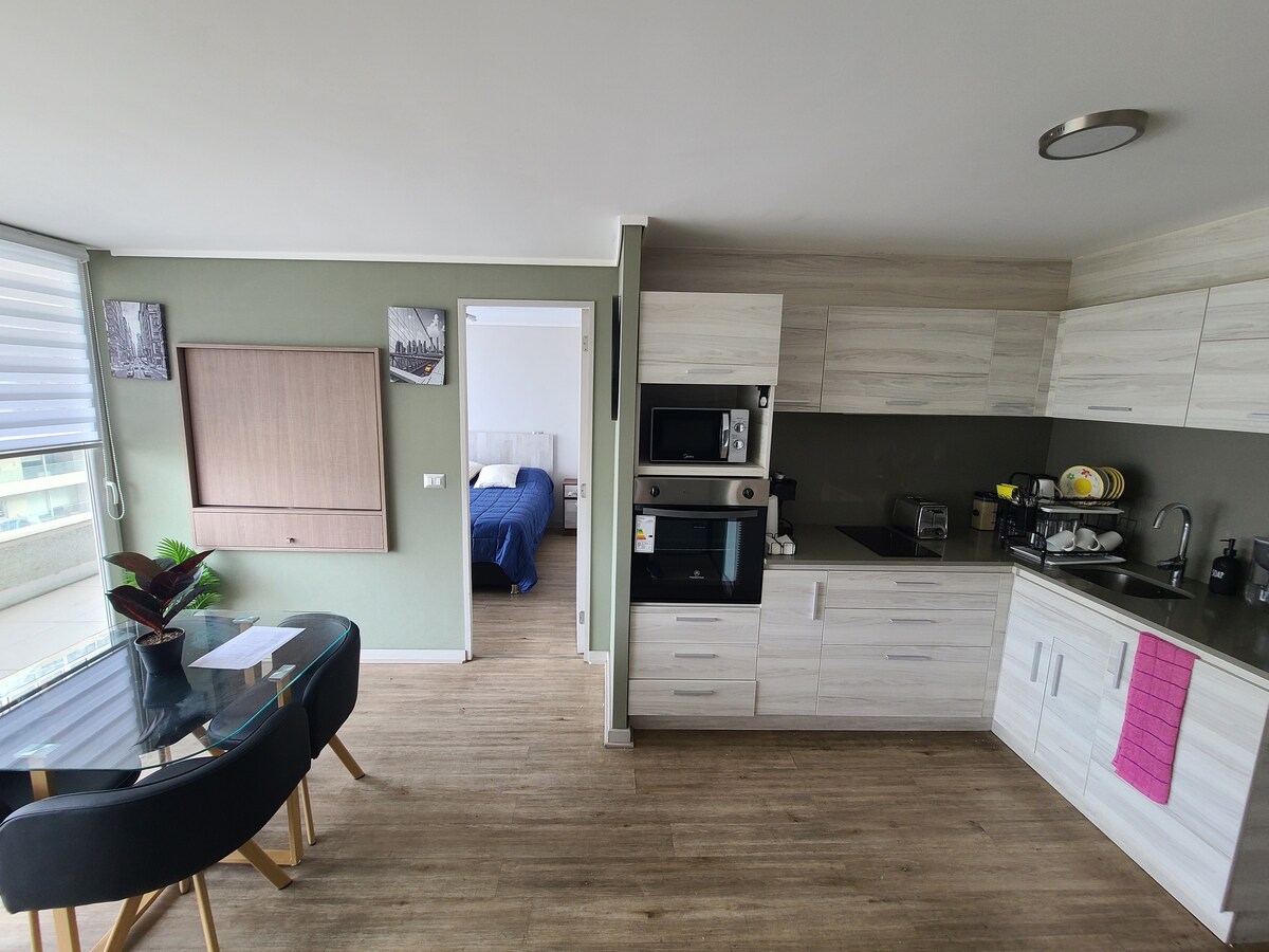 Et lite loft i en moderne bygning … veldig godt utstyrt for et hyggelig opphold, med alt du trenger for å føle deg veldig komfortabel, nær bussterminalen, to kvartaler fra T-banestasjonen, transportmuligheter på hjørnet, veldig nær et supermarked og Viña Centro-kjøpesenteret, og syv minutters gange til Quinta Vergara. Det er ingen parkering tilgjengelig inne i bygningen, bare utenfor bygningen (jeg kan skaffe deg en parkeringsplass mot en ekstra kostnad inne i bygningen).