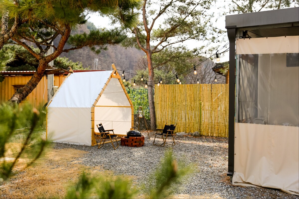 Varsel om rabatt på tidlig fugl i 🎈🎈siste liten🎈🎈 Vi gir deg 10% rabatt hvis du bestiller tidligere enn den 28 av innsjekkingsdatoen, eller hvis du bestiller i forkant av en måned. 👉 Rabatter blir automatisk brukt på bestillingstidspunktet og reflekteres direkte i betalingsbeløpet. Dette er en Gapyeong Four Seasons hund glamping campingvogn som liker å helbredes med kjæledyr og lindrer daglig tretthet med en jjimjilbang sauna. * Rommet i denne eiendommen er campingvogn 1 (individuell grill). Undersøk instruksjonene for dette rommet nedenfor. * Hvis du har ytterligere spørsmål, ta kontakt med profilen din.