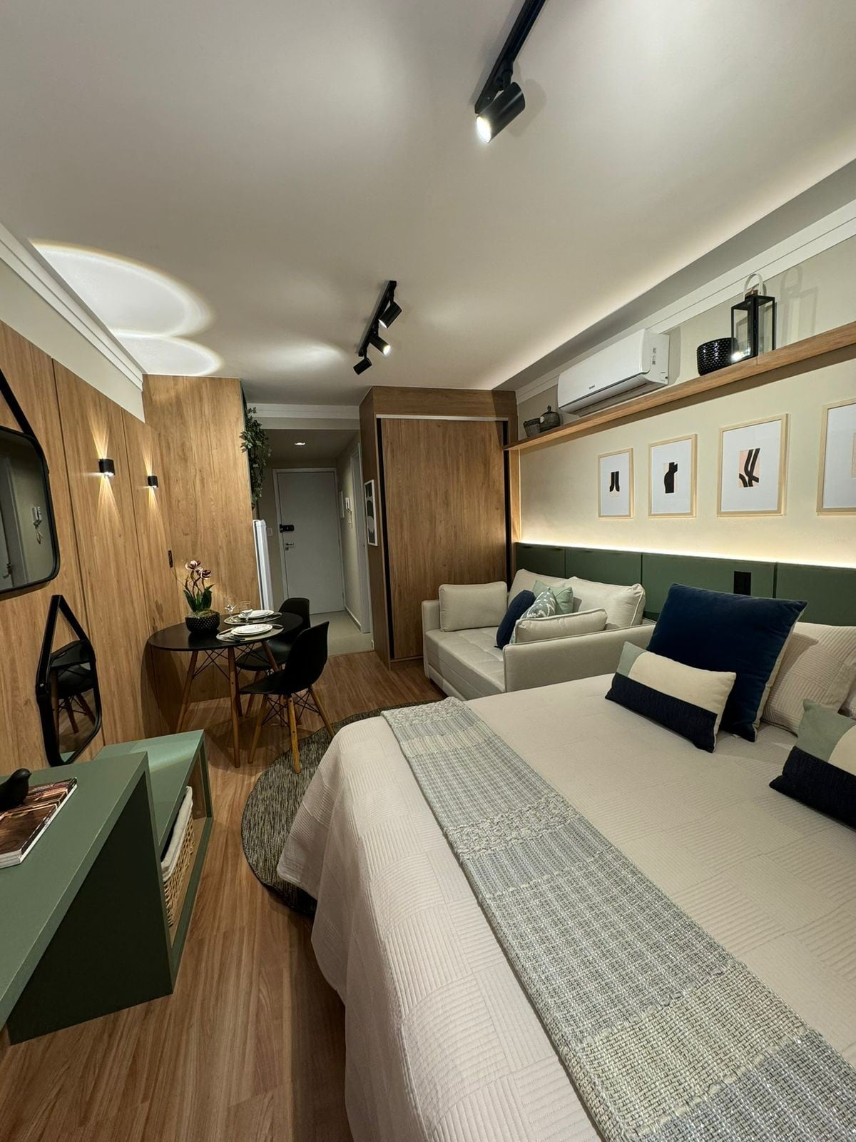 Dette moderne og fullt utstyrte studioet tilbyr den perfekte balansen mellom komfort og praktiskhet, ideelt for opptil 4 personer. Med beliggenhet i sentrum av Poços de Caldas, er du bare noen få meter unna torg, barer, bakerier og gode restauranter – alt i et rolig område, ideelt for å utforske byen til fots. Det er også enkel tilgang til Uber i området. Perfekt for de som ønsker komfort og en sentral beliggenhet!