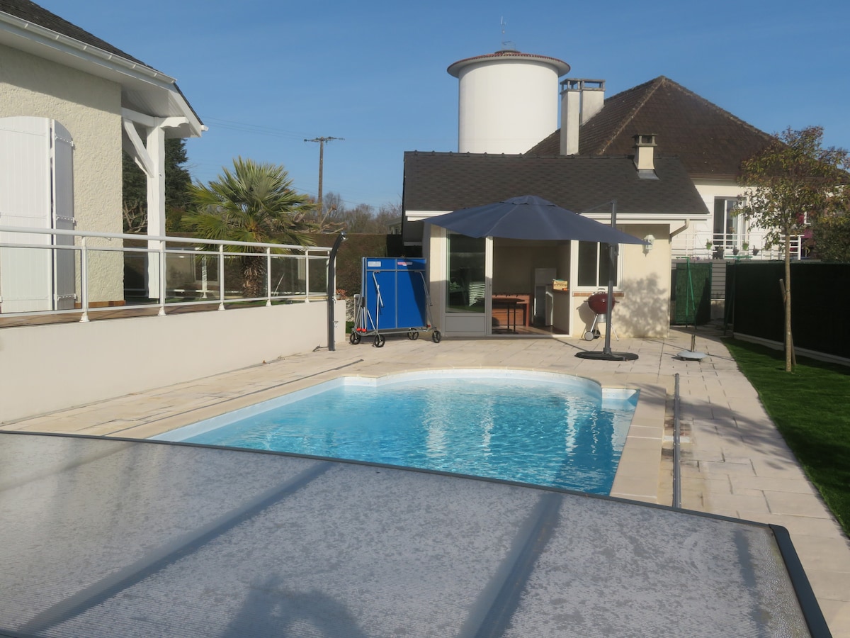 Sjarmerende familiehus i rolig område, svømmebasseng, 8 personer