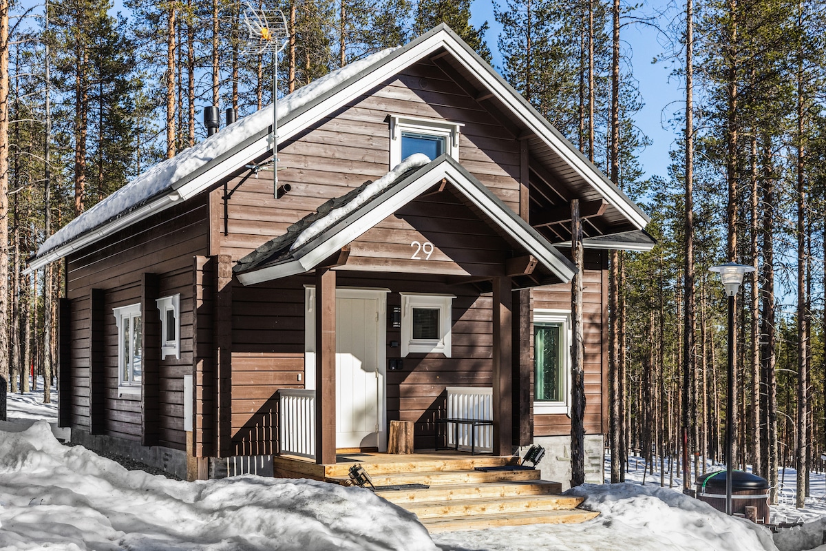 Koble fra omverdenen og nyt privatliv på denne nye hytta, et spesielt sted med høye lappaktige trær som omgir deg og et boblende boblebad for å forbedre Lappland-opplevelsen. Tenk deg å våkne hver morgen til utsikten over pulserende grøntområder eller et snødekt landskap, og deretter kutte dagen din med en beroligende saunaøkt. Inne oppdager du et romslig område på 56 kvm, med en Naava-grønn vegg, en HDTV og 100 Mbps trådløst nettverk! Vi leier også ut en bil!