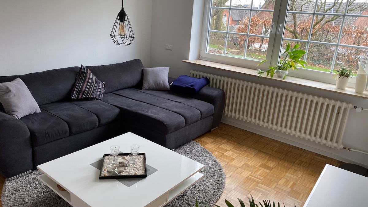 En liten, kjærlig møblert leilighet med skotsk stil venter på besøket ditt. Sentrum og havnen kan nås på omtrent ti minutter med bil eller buss. Nærmeste holdeplass ligger fire minutter unna. Mange shoppingmuligheter i nærheten: Citti Park, Rewe Center, IKEA og ulike supermarkeder. Boligområdet er veldig stille. Hos oss får du et avslappende opphold.