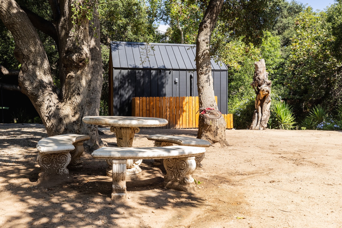 Denne ultimate romantiske glampingferien tilbyr en unik, transformativ naturferie! På toppen av Malibu-åsene OVER SKYENE med en av de MEST SPEKTAKULÆRE UTSIKTENE OVER HAVET OG FJELLENE PÅ VESTKYSTEN, har feriestedet en tilpasset AIRSTREAM med store skyvedører i glass, et autentisk beduintelt, et afrikansk basseng, en utendørs kino, stjernekikkingsseng, huske, piano og dusj nøye designet for å bringe ånden i Sahara-ørkenen til California! En drømmeopplevelse du får én gang i livet!