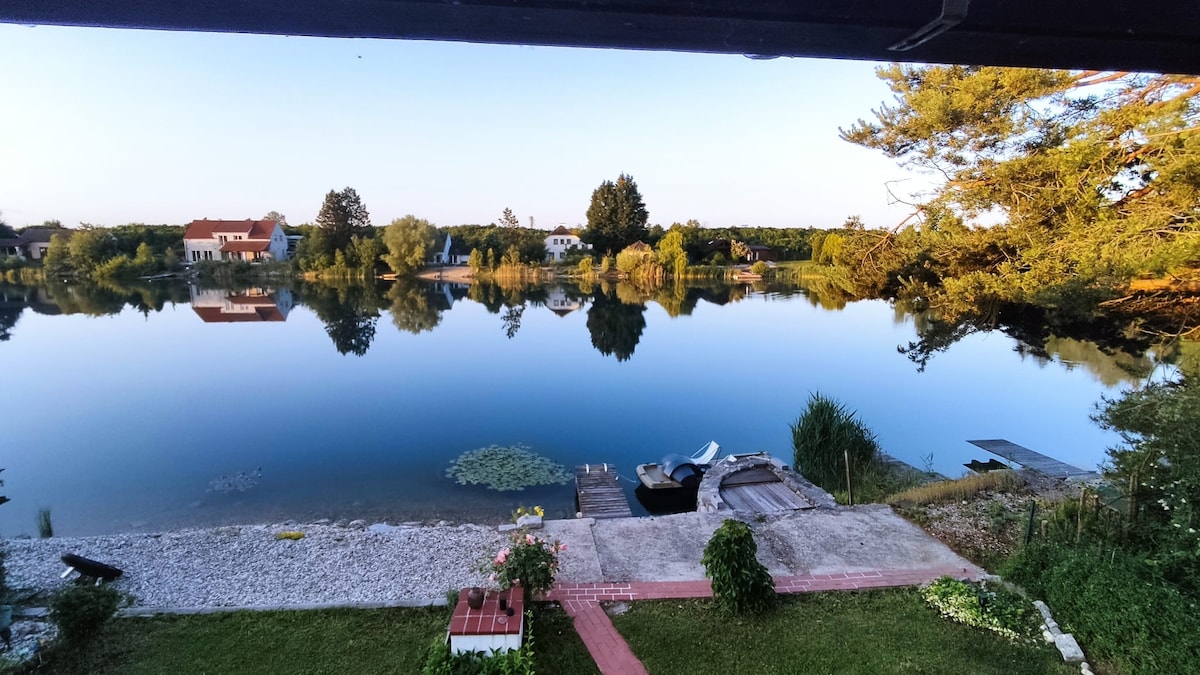 Ha det gøy med hele familien på dette stilige stedet ved siden av en badesjø. Den ligger 30 minutter med bil og 20 minutter med tog fra Wien, men føles som en verden unna. Moro, fredelig og flott for sport og avslapping. 600 kvm hage, flott for sykling langs Donau og skogene, og ett minutt å svømme i innsjøen Altarm (med friskt kildevann, ingen strøm) ved siden av Donau. Flere terrasser, muligheter til å grille eller bare ta en spasertur. Huset har to bad og opptil fire soverom.